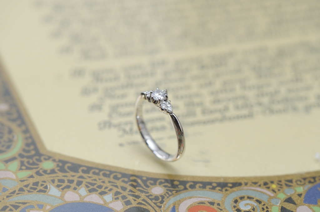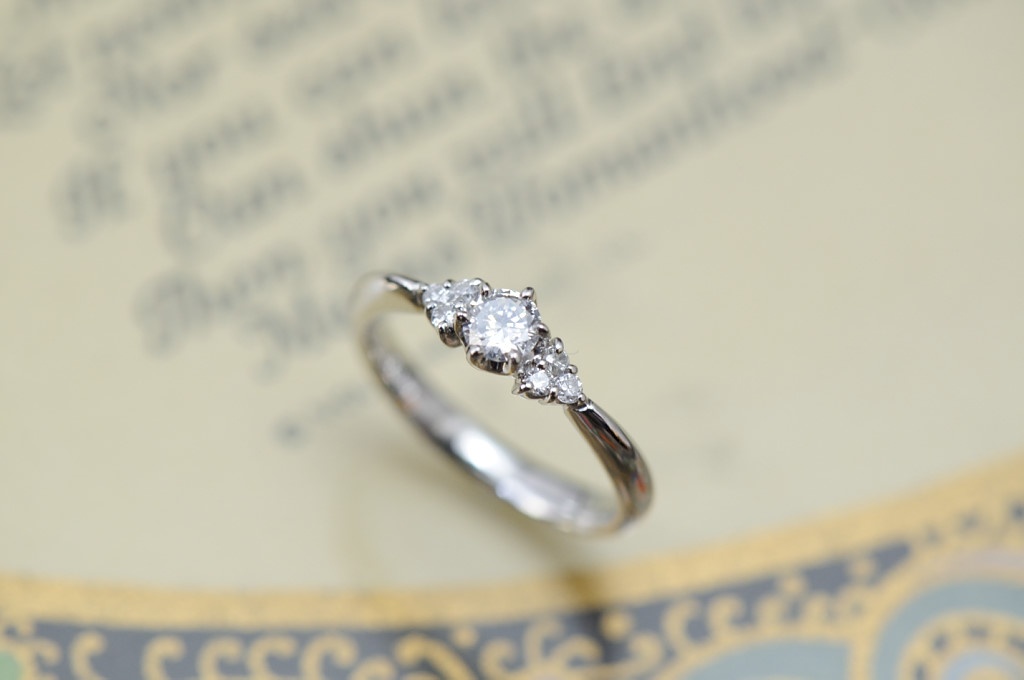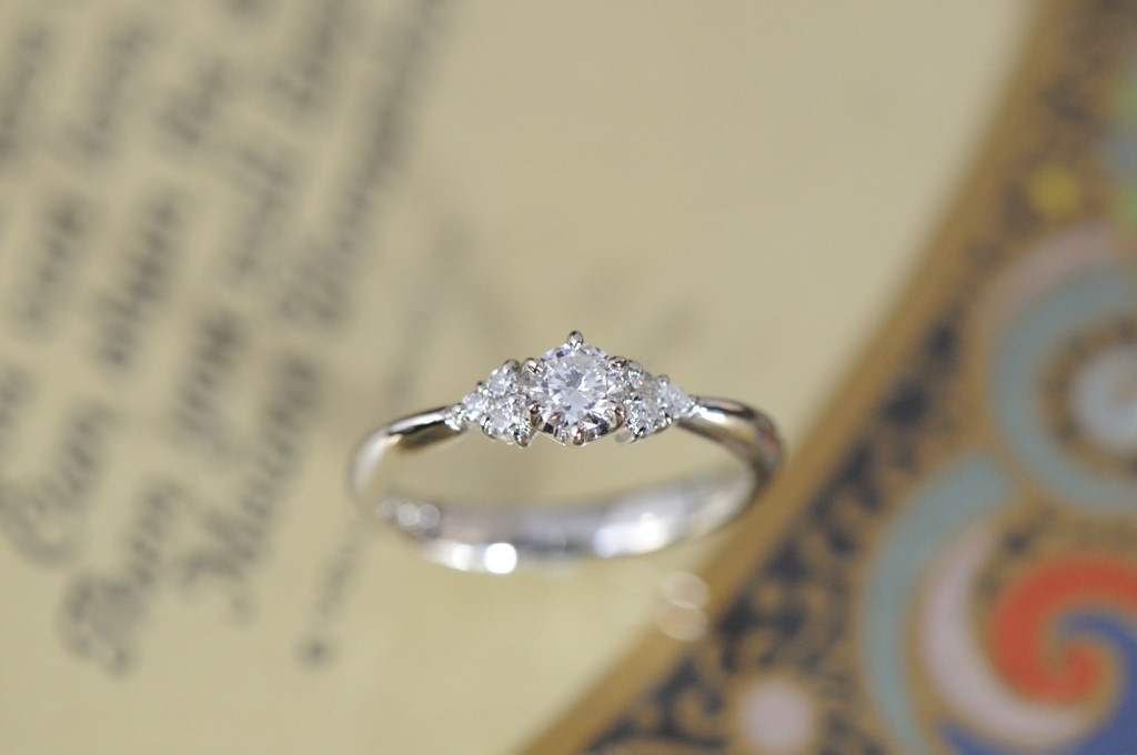 センターのダイヤと、ボリューム感を揃えるようなサイズで再度に3ピースずつを配しました。