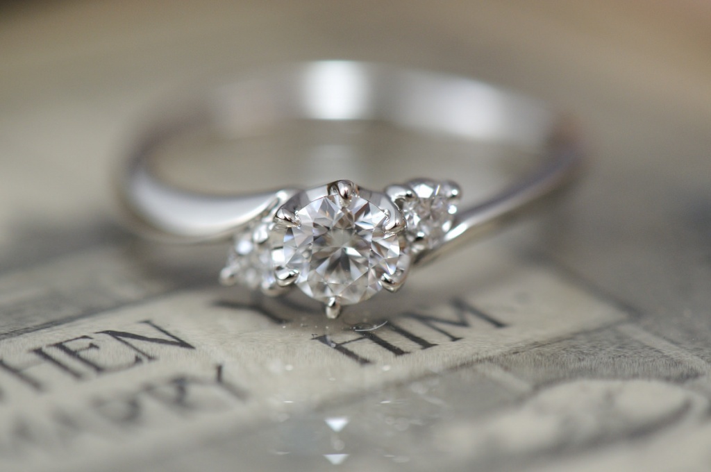 婚約指輪 2016.10.22 〔婚約指輪〕ウェーブリングと3つのダイヤモンド プラチナの婚約指輪 ラウンドブリリアントカット(センター0.3ct前後) 流れるようなウェーブに、0.3カラットのダイヤモンド、両脇には控えめに、かつ存在感のある小粒のメレダイヤを2石。 動きのあるデザインが、薬指に綺麗にはまります。 商品についてのご相談・ご予約・お問い合わせはこちら