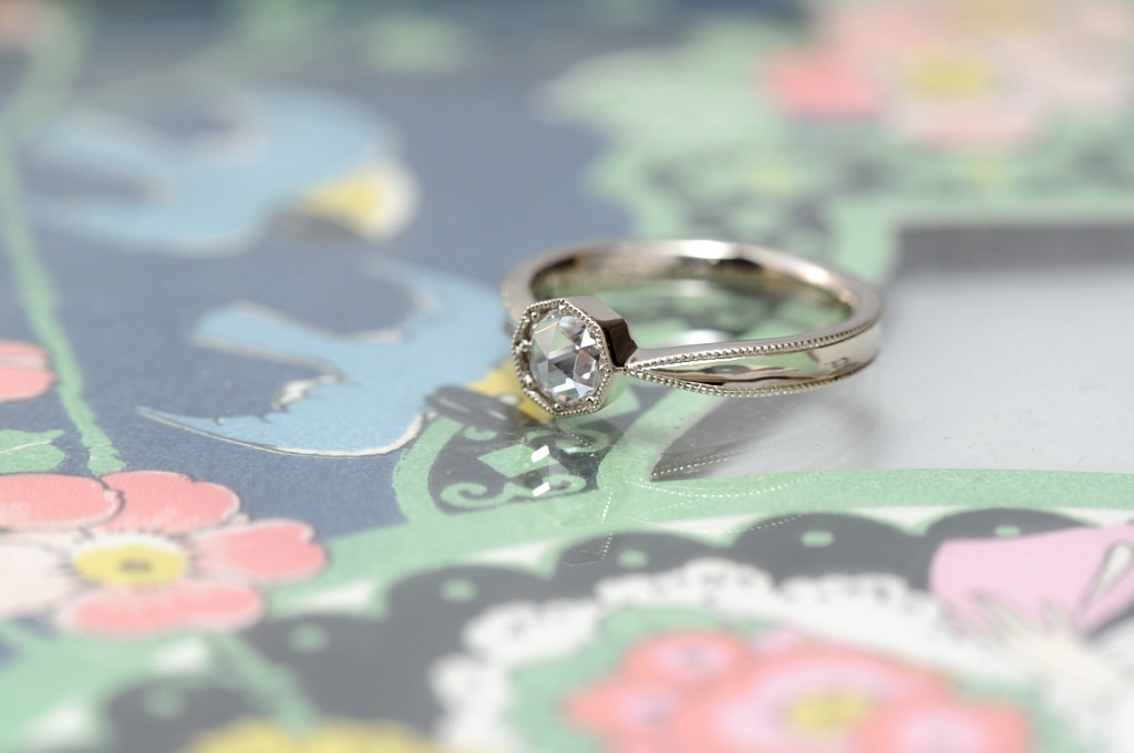 オーダーメイド婚約指輪//ローズカットダイヤモンド 八角形タイプ