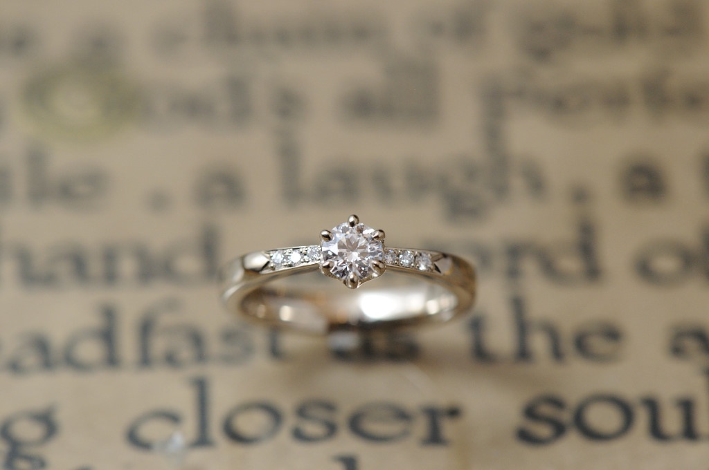 婚約指輪 2019.02.10 オーダーメイド婚約指輪//シェイプリング 全体をシャンパンゴールドでお仕立てしたエンゲージ。 センターに向けて少しだけ腕を絞り、3ピースずつ両サイドに並べました。 一見シンプルなデザインも、ほんの少しのこだわり、色で個性が花開きます。 商品についてのご相談・ご予約・お問い合わせはこちら