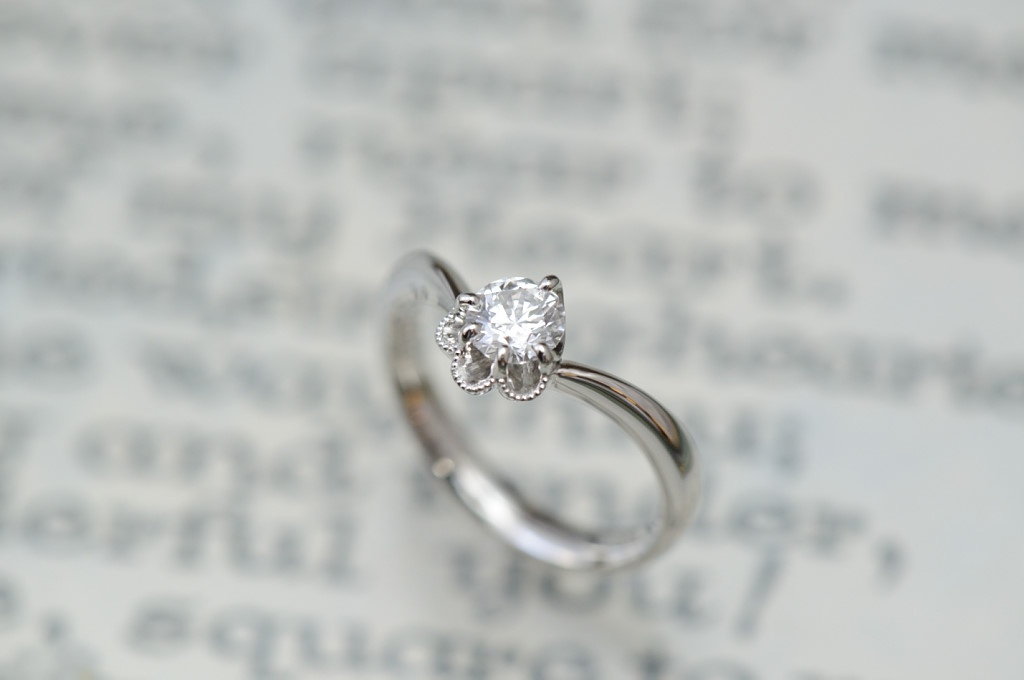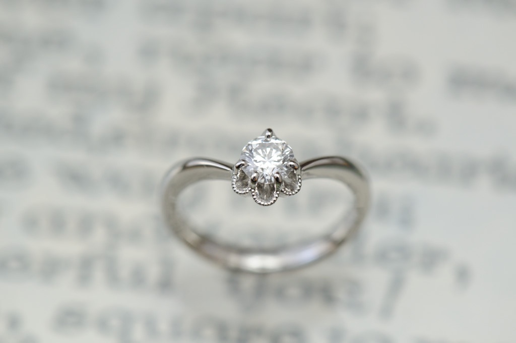 センターのダイヤモンドの下は、ドレープの様なふんわりと柔らかなフォルムを作りました。