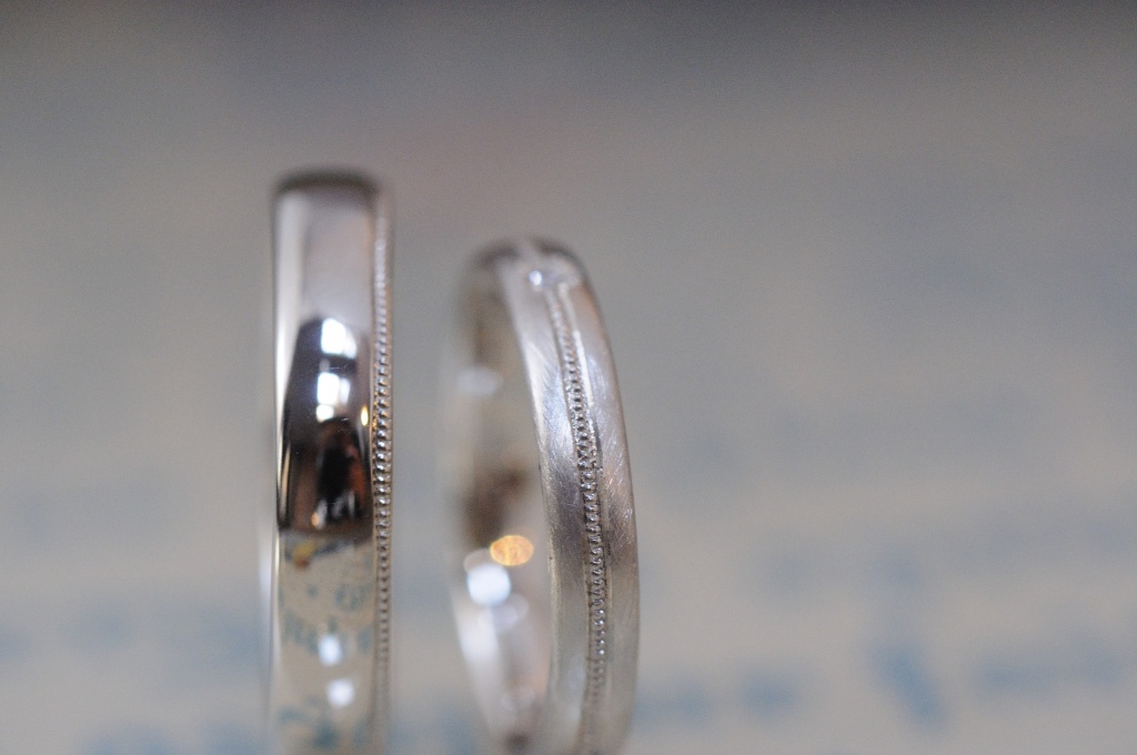 メンズはピカピカの鏡面仕上げに、片側一周ミルグレインを施しました。