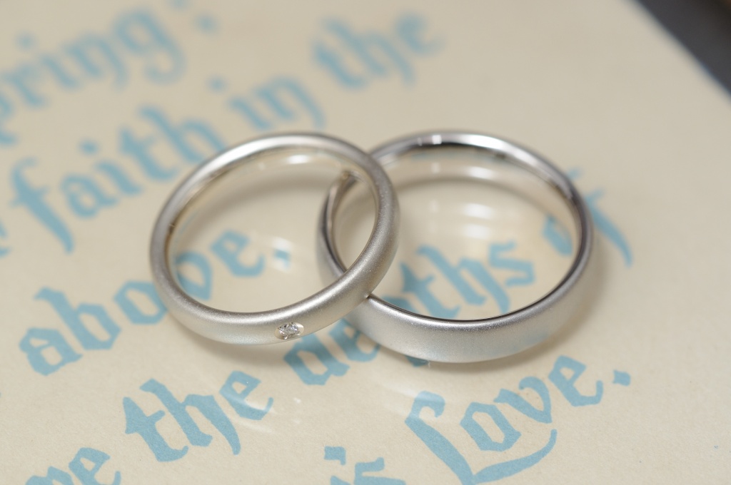 サンドブラストのシンプルなオーダーメイド結婚指輪