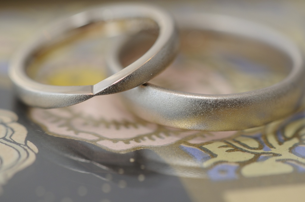 シャンパンゴールドとサンドブラストの結婚指輪