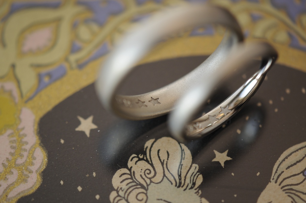 内側はレーザー刻印で、お二人の手描きの星を照射しています。