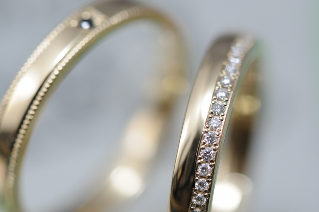レディースは、ラインを入れたように極小のダイヤモンドを下部にずらっと並べました。