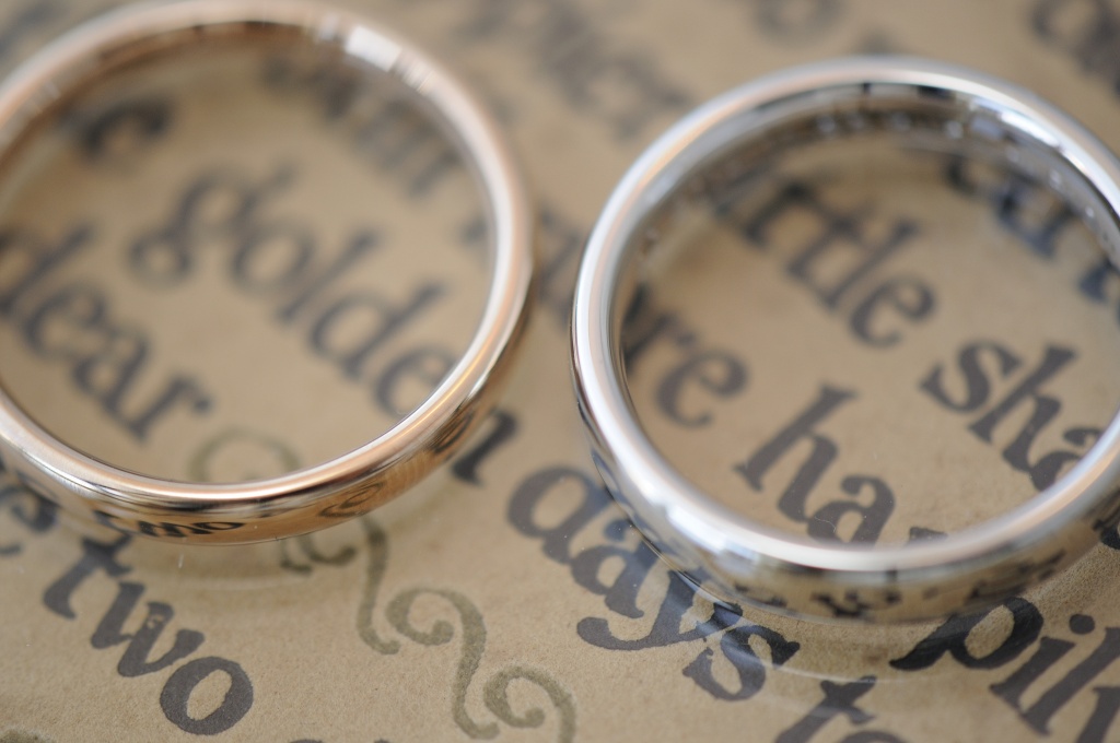 レディースはピンクゴールド、メンズはプラチナの、とにかくシンプルで輝きの美しい結婚指輪ができました。