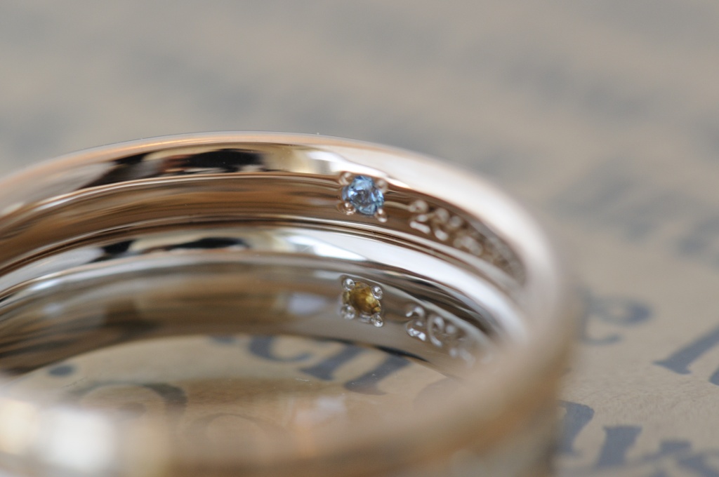 内側には、それぞれの誕生石を入れました。