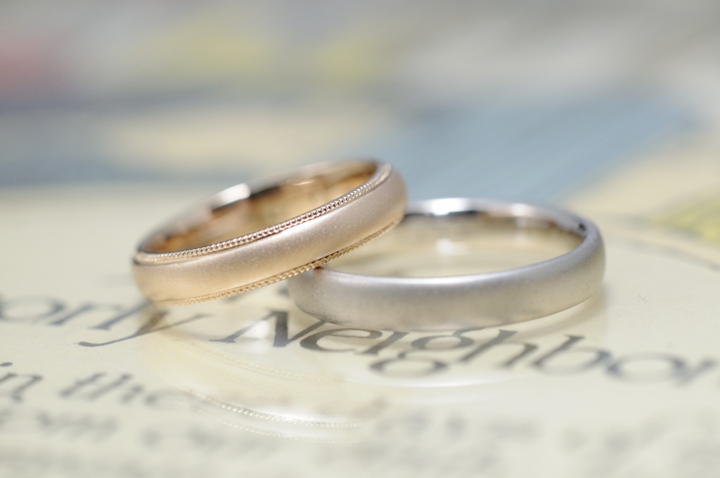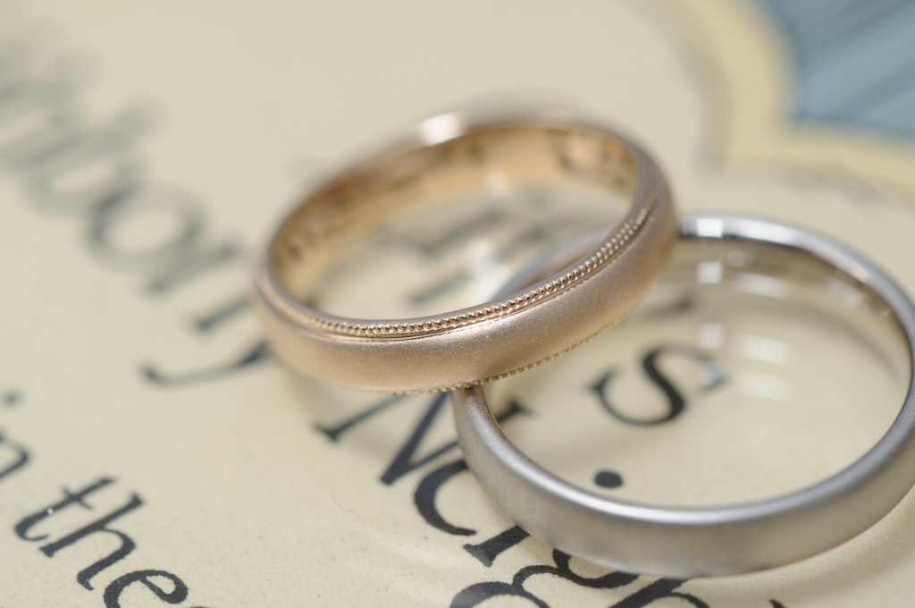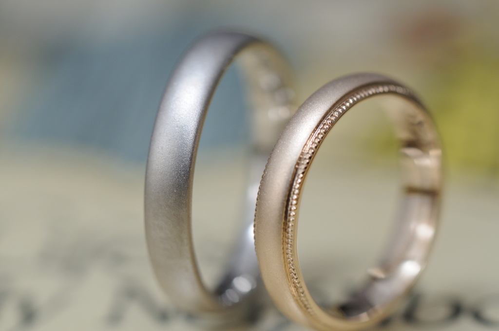 ローズとホワイトゴールドにサンドブラストのオーダーメイド結婚指輪