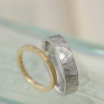 プラチナ&ゴールド 平打ち鎚目のオーダーメイド結婚指輪