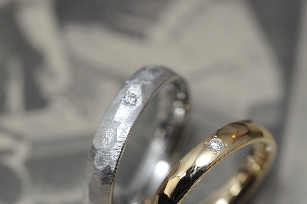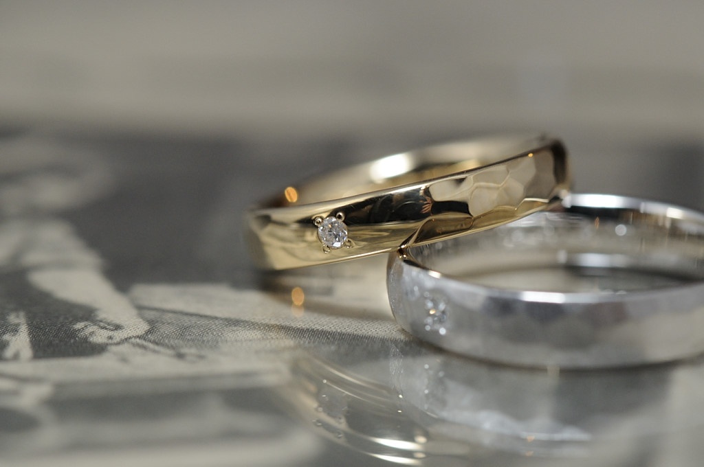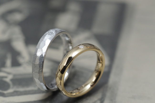 槌目と甲丸を組み合わせたオーダーメイド結婚指輪