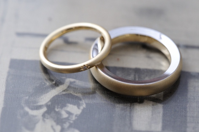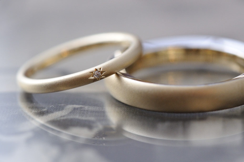 イエローゴールドのペアに、柔らかな光を放つサンドブラスト加工です。
