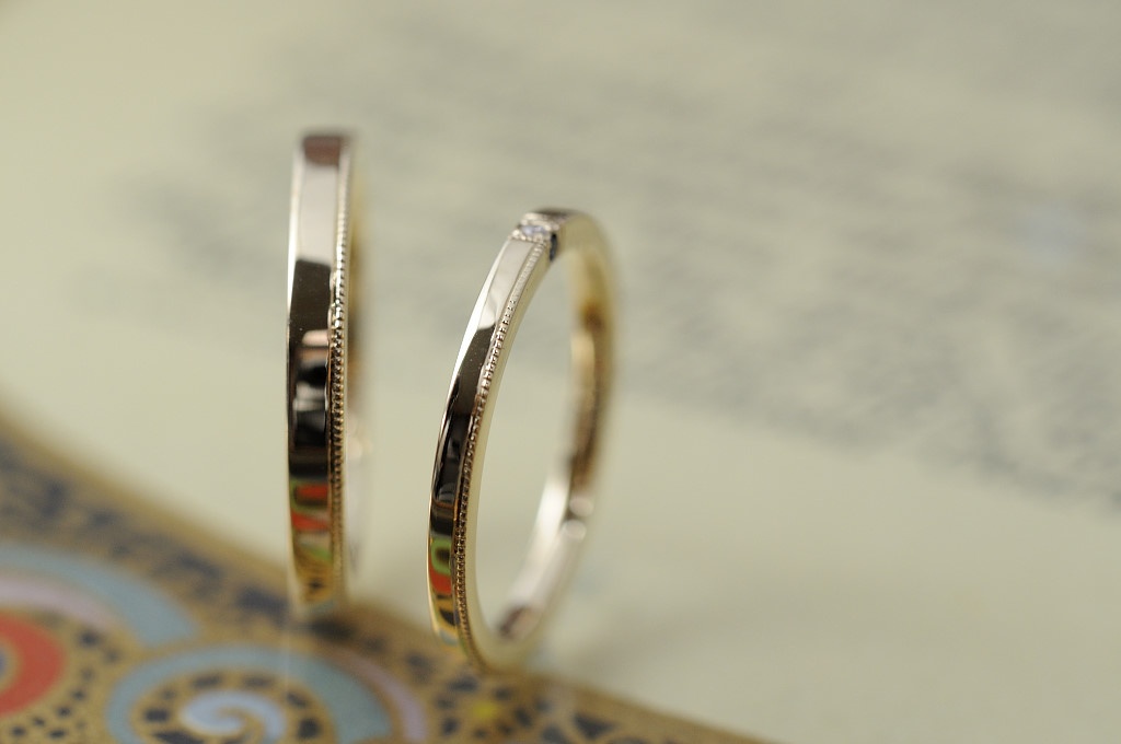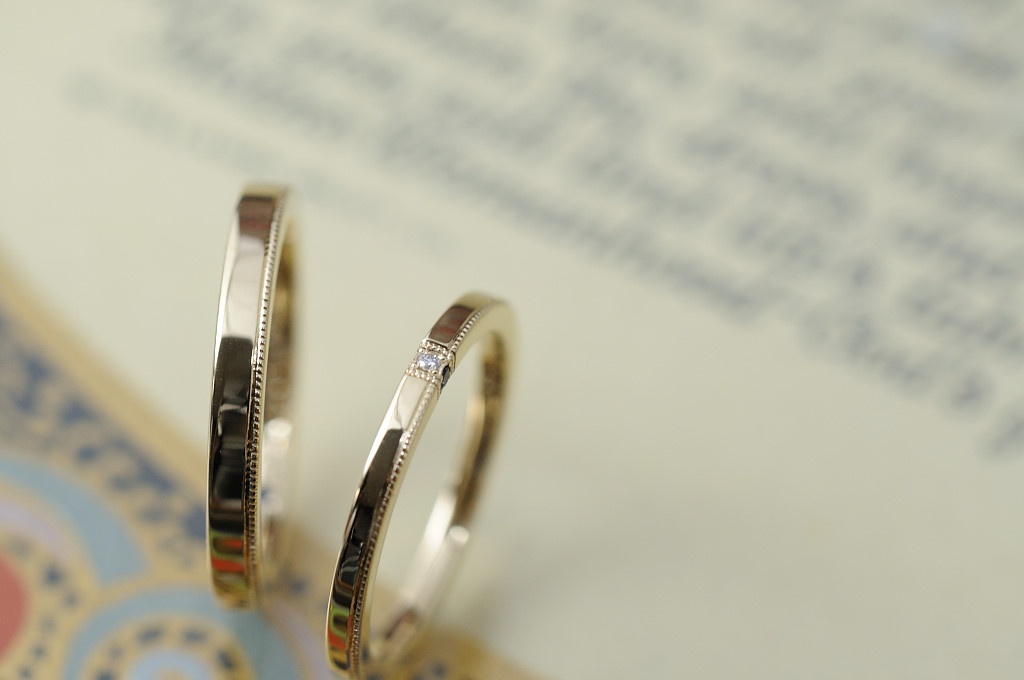 HOME 結婚指輪 イエローゴールド ダイヤ&ミルグレイン 結婚指輪