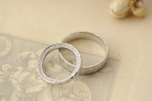鎚目とフルエタニティーのオーダーメイド結婚指輪