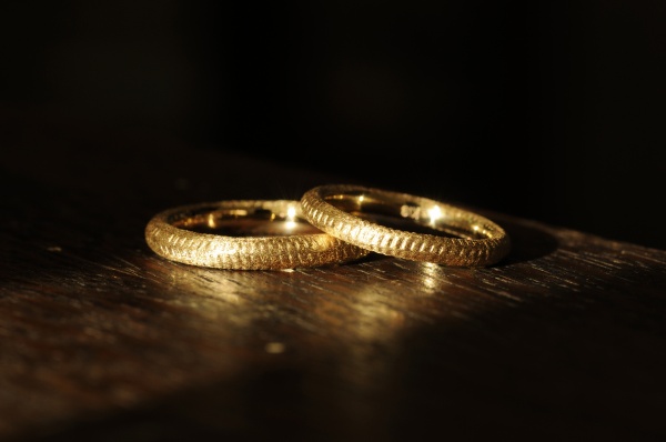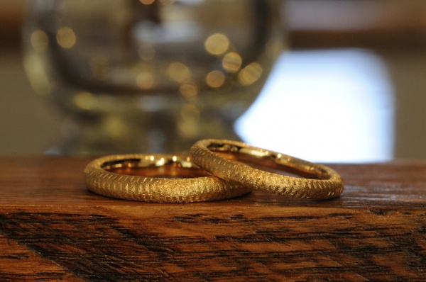 ギザギザの加工は、お天気や内外の明かりのちょっとした違いで、指輪の表情を変えます。