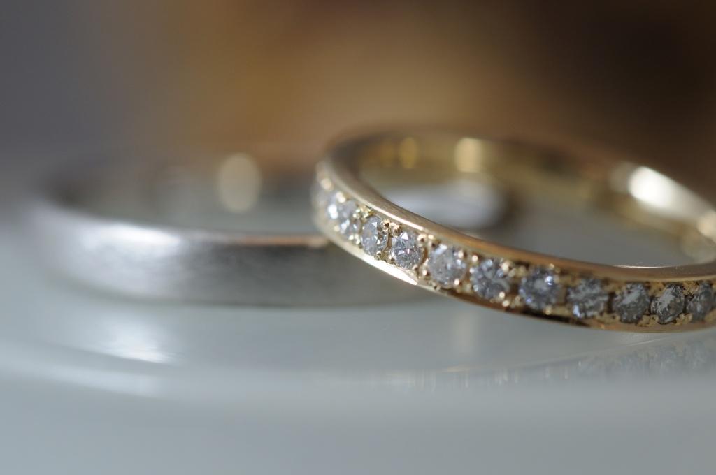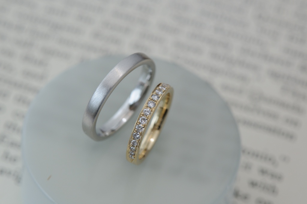 ハーフエタニティとシンプルなプラチナリングです。