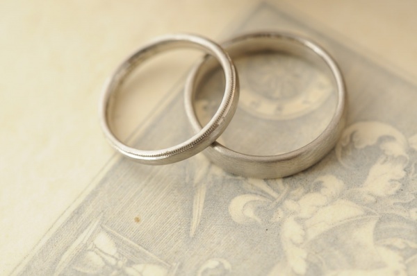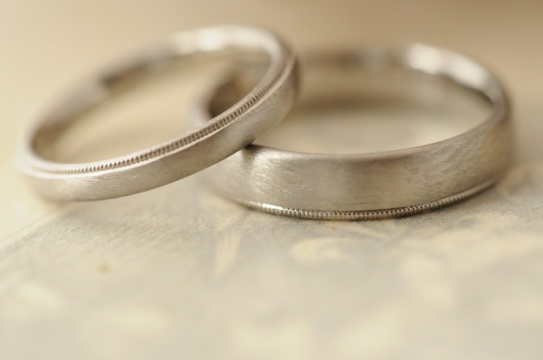 基本的にはシンプルなミルグレインの結婚指輪なのですが、今回はメンズ・レディースともに片側にのみミルグレインの加工を施しました。