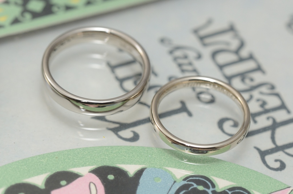 究極のシンプルといえる鏡面仕上げと甲丸リングの組み合わせです。
