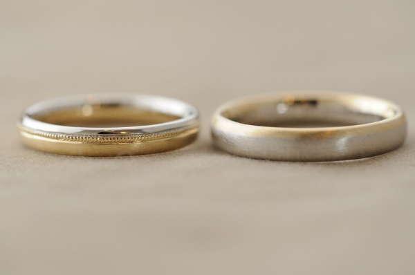 プラチナとゴールドのコンビとミルグレインのオーダーメイド結婚指輪