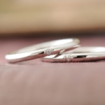 丸いリングに、レディースは小粒のダイヤをぐるりと三粒、その両サイドにミル。
