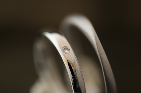 レディースはふっくらした丸みのある形、メンズは、絞りを入れてシャープな印象です。指の腹にあたる部分は同じ丸みを持たせているので、ペアは感じられます。