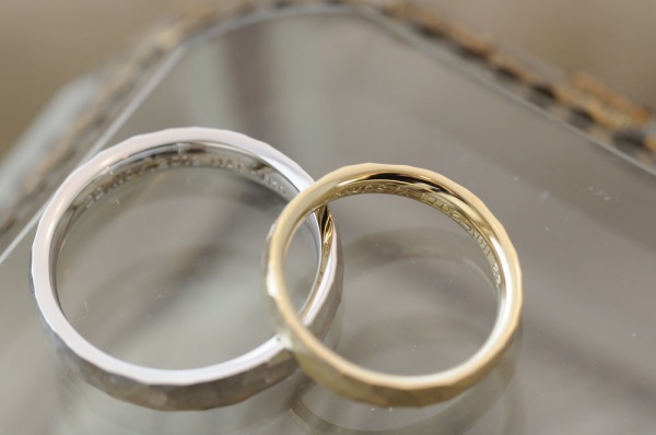プラチナ&ゴールド 鎚目のオーダーメイド結婚指輪