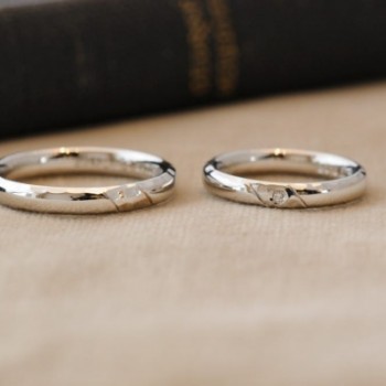 レディースにはその部分にダイヤが1ピース。きらきらした槌目の中にダイヤが一粒、さりげないようでしっかり輝いていて綺麗です。