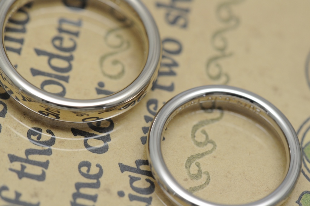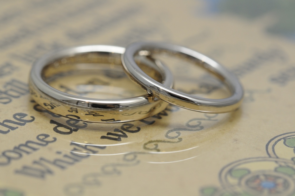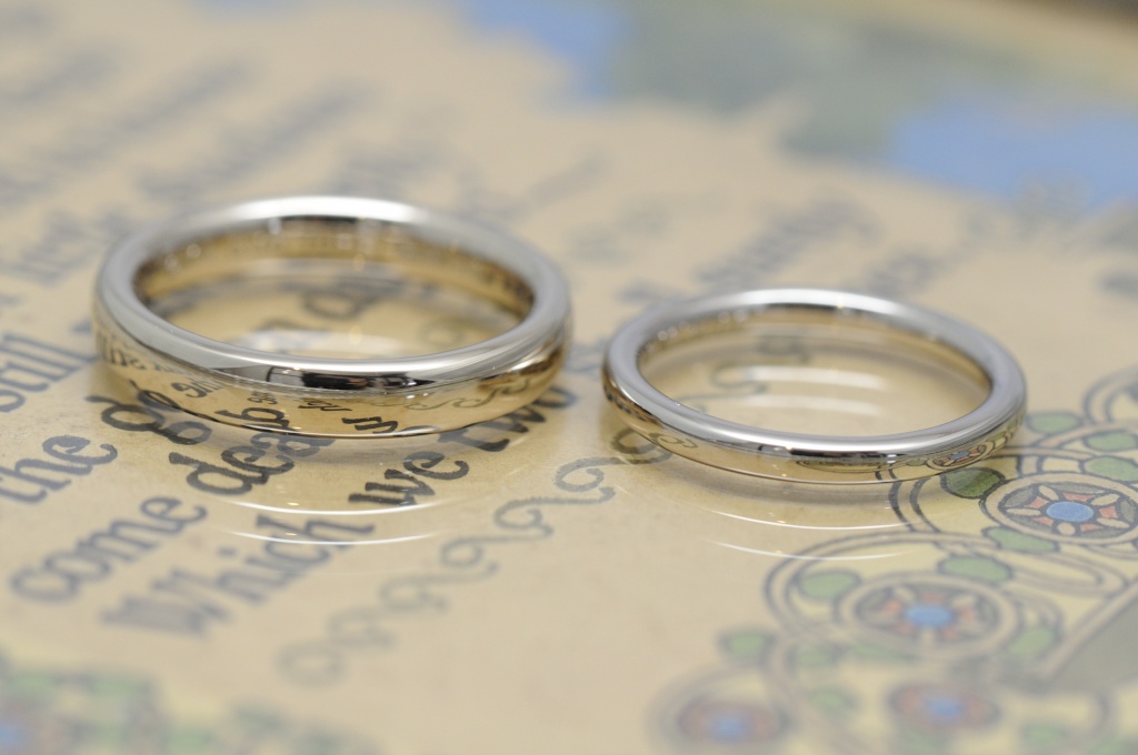 メンズは、幅は適度に、同じく厚みを出して、たっぷりした印象のリングになりました。