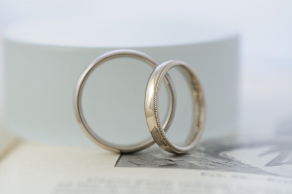 シンプル 甲丸とミルグレインのオーダーメイド結婚指輪