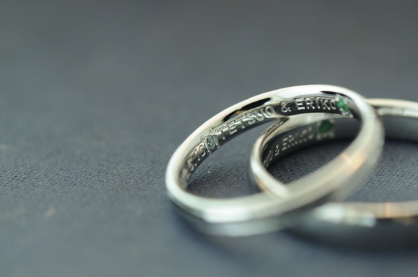 内側にはお互いの誕生石を留めました。レディースは相手だけでなく自分の誕生石も合わせて2石留めています。