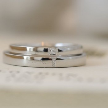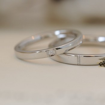 プラチナ、平打ちタイプの結婚指輪です。
