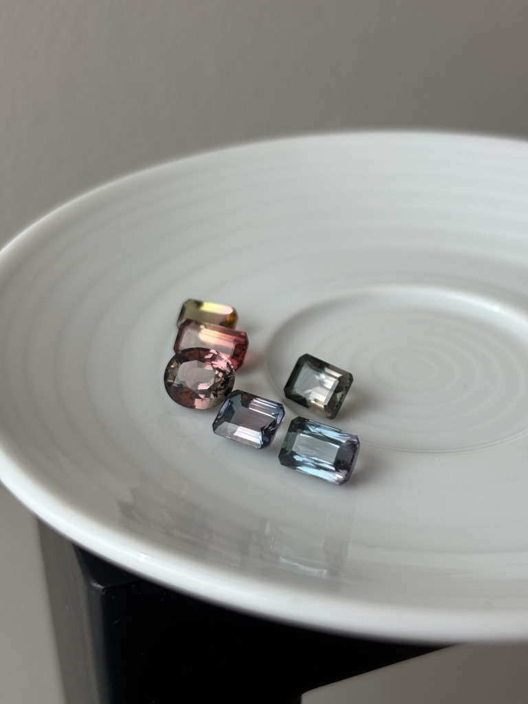 トルマリンは、なかなか渋色で、一瞬サファイアかなと思い近づいたくらい青と紫がきれいな深みのある色でした。