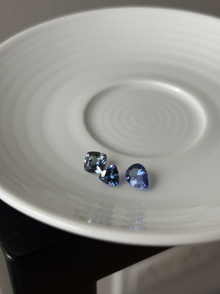 タンザナイトは、インスタでも少し触れたのですが、この青以外にグリーンとイエローがありました。