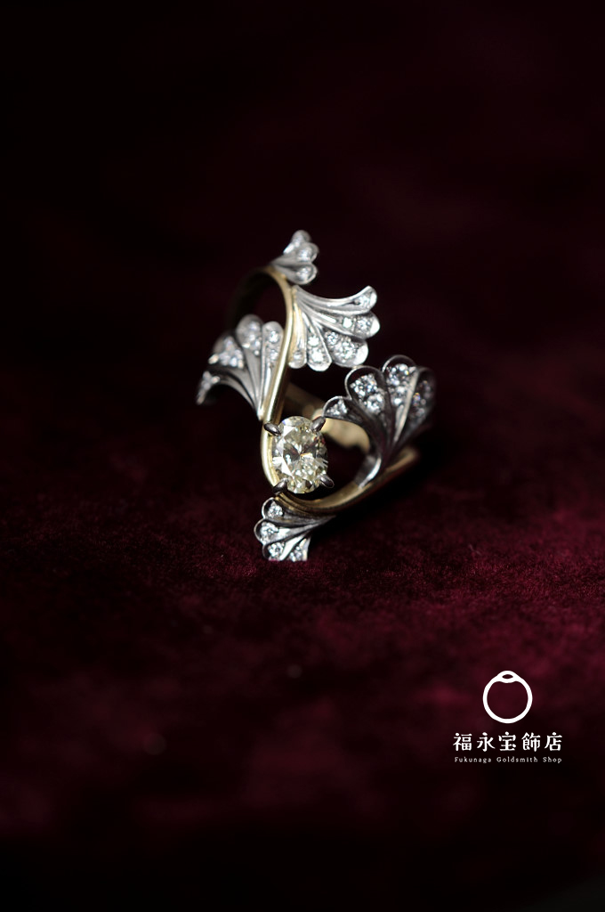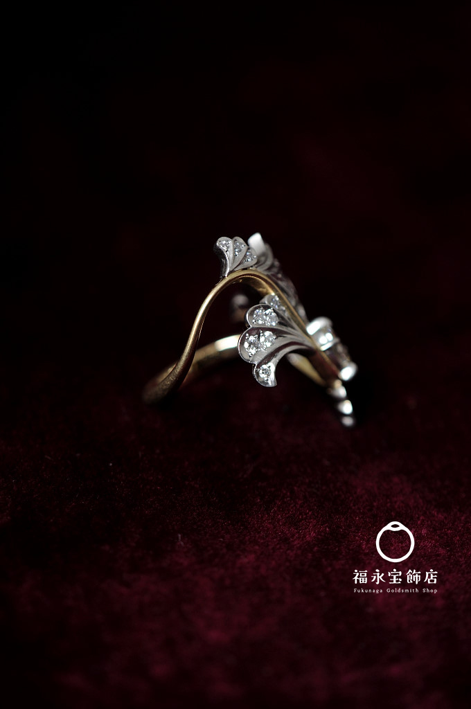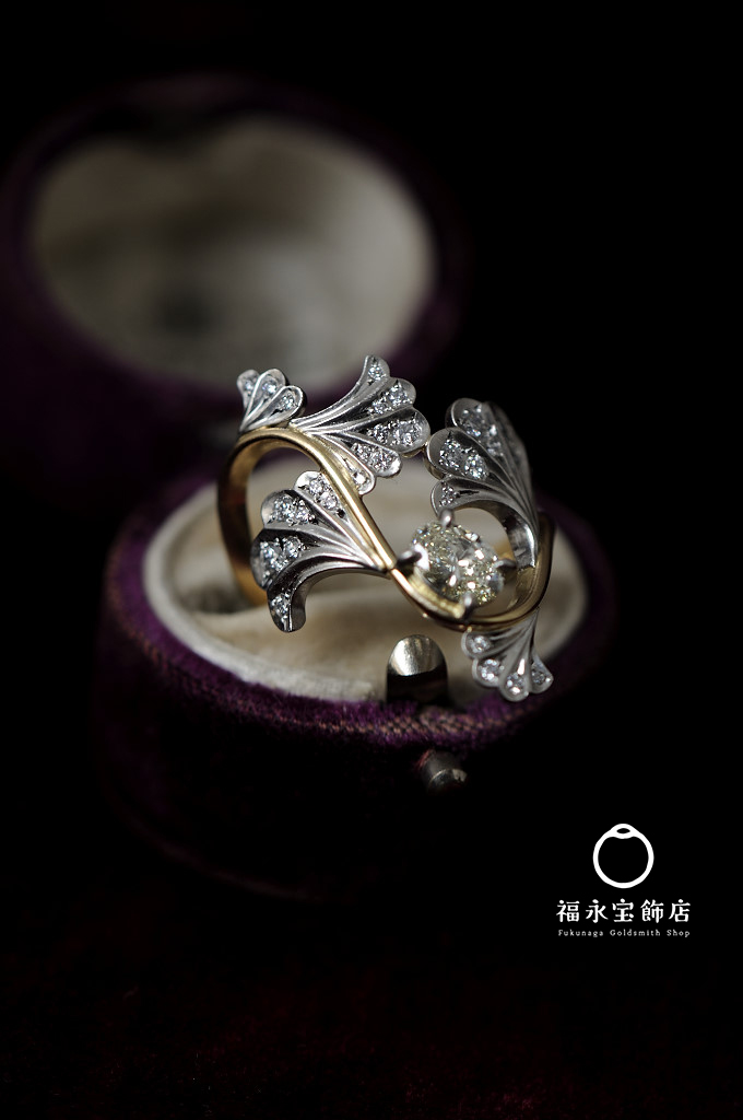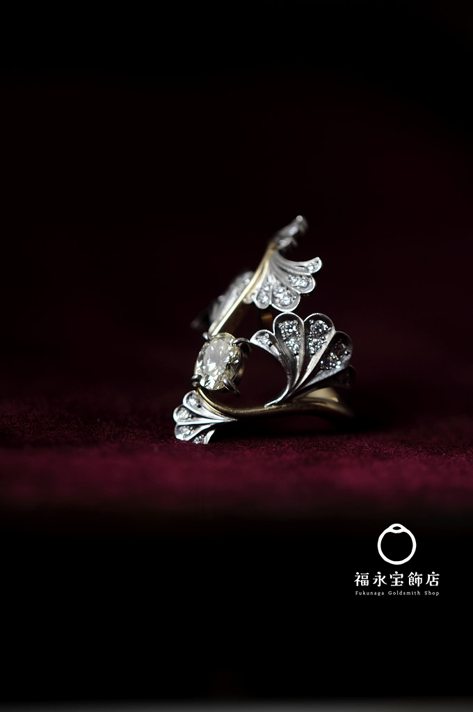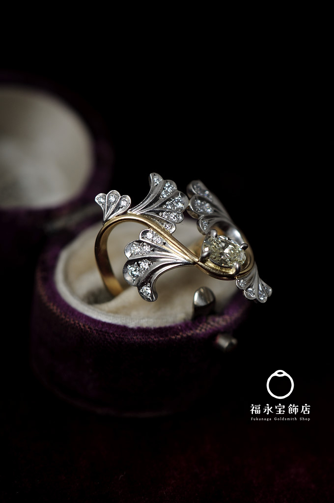 それをもとに、可能な限り再現した、本当にビーナスが誕生したかと見紛うような美しい唯一無二のご婚約指輪が出来上がりました。