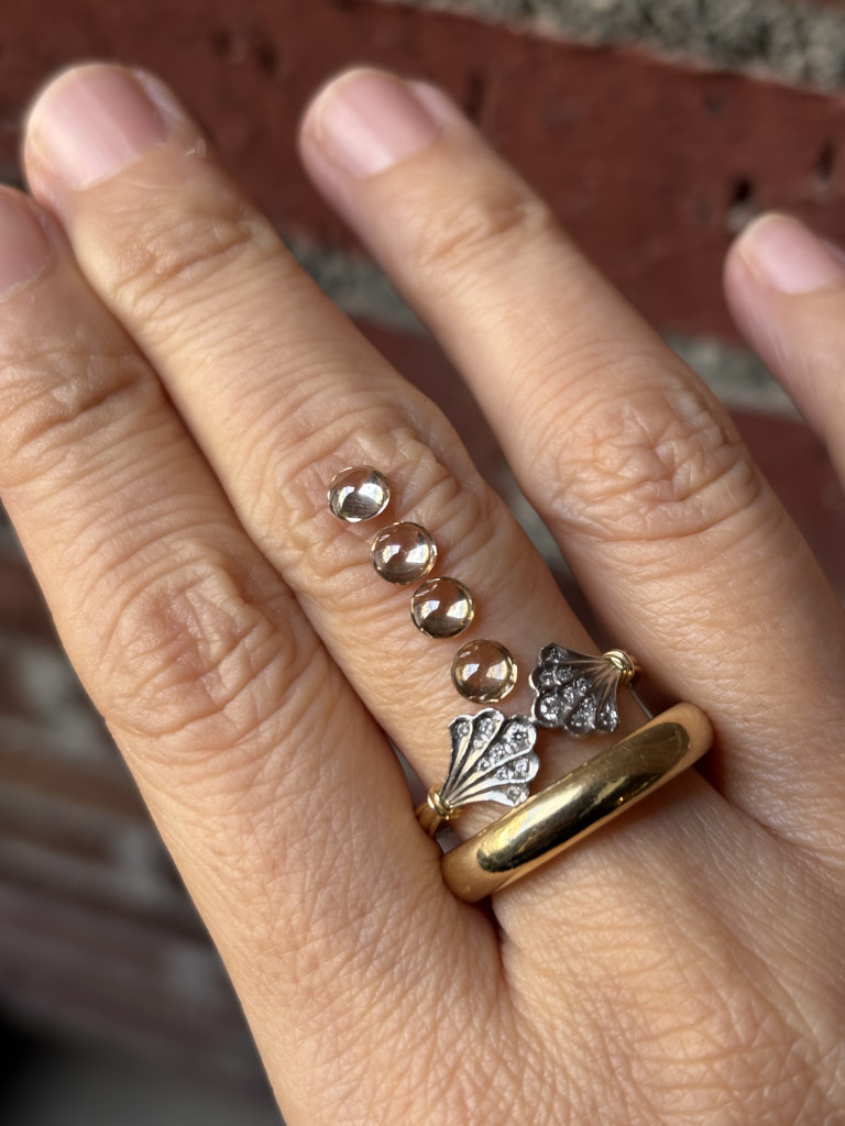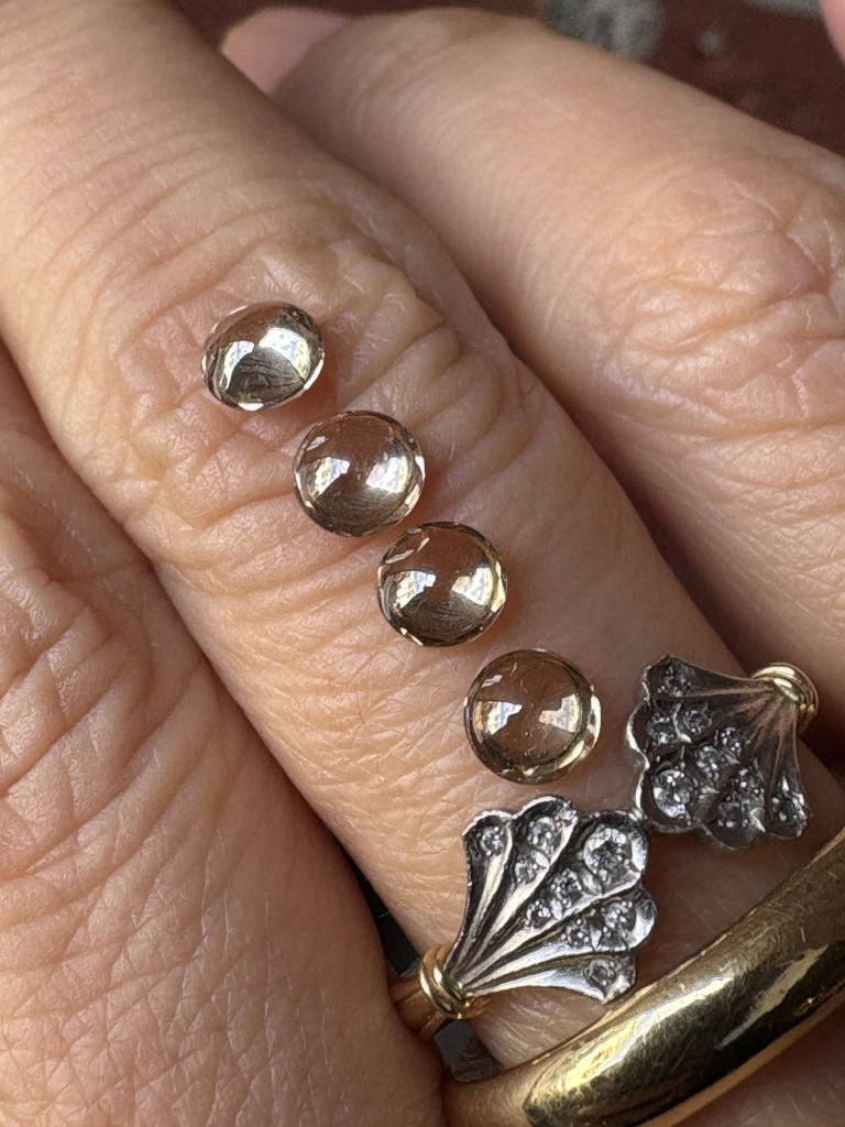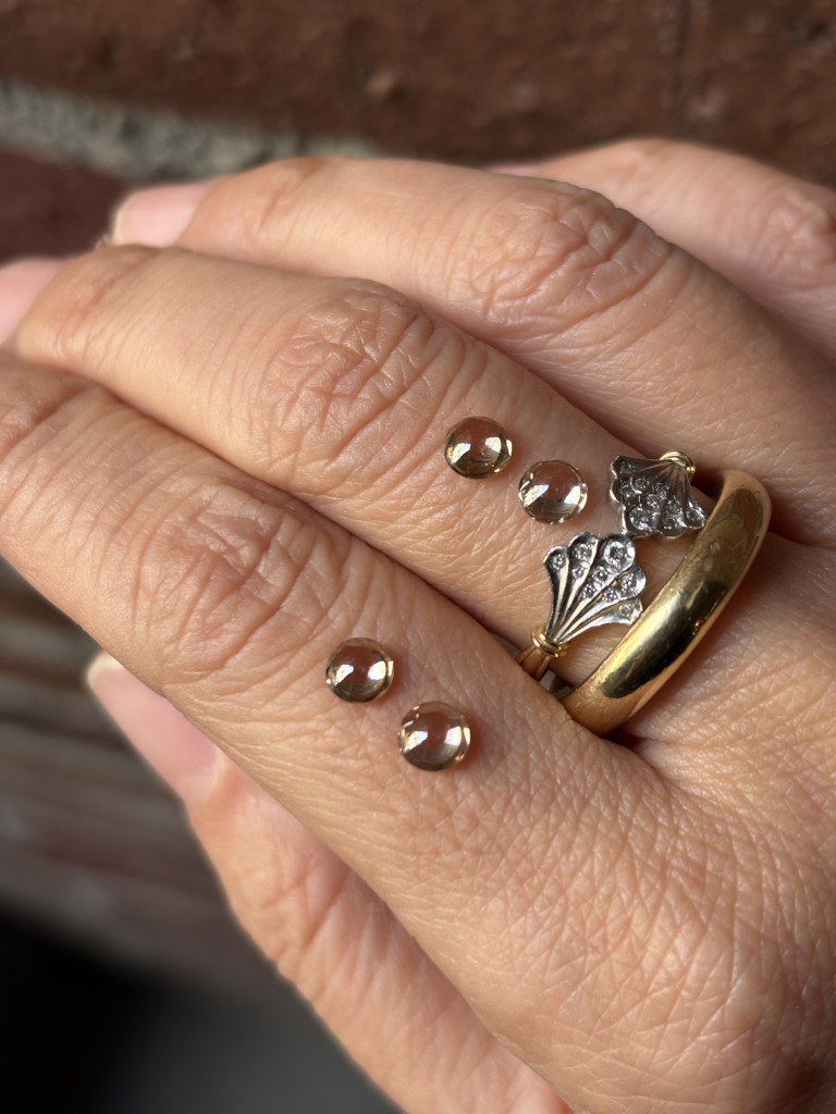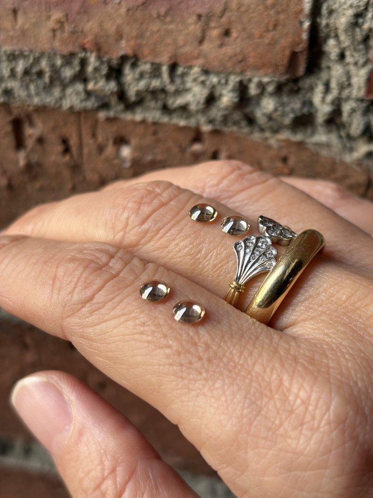そのセンターにダイヤを留めたいと思っていたのですが、キラキラするホワイトはちょっと違うかなーと、ふと思いついたのはカボションダイヤ。
