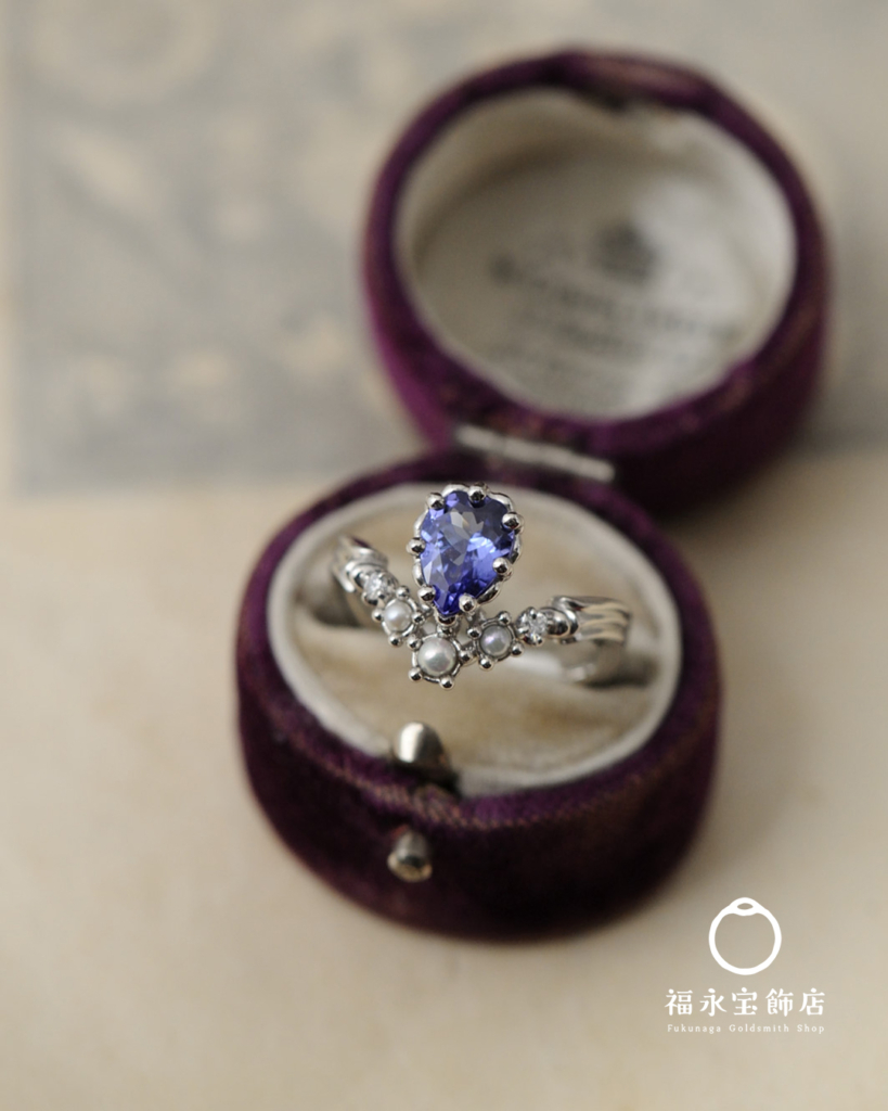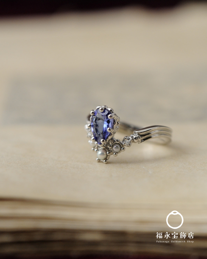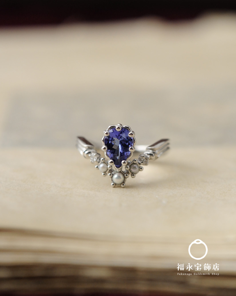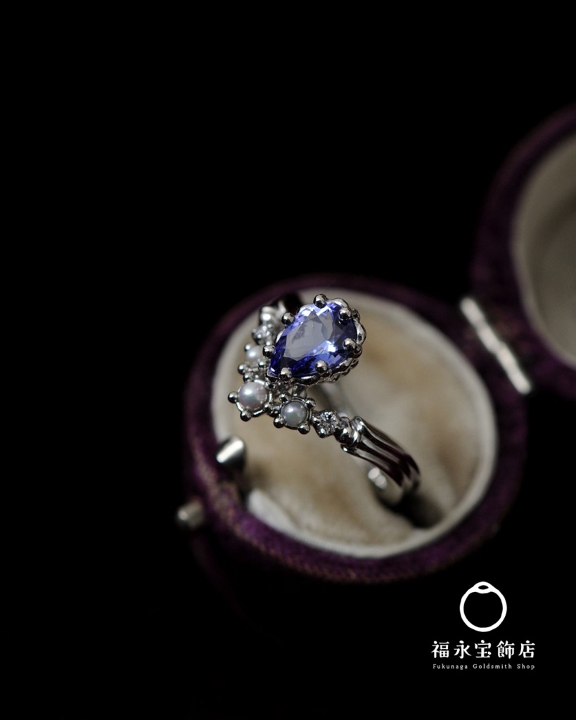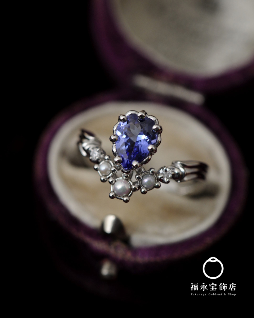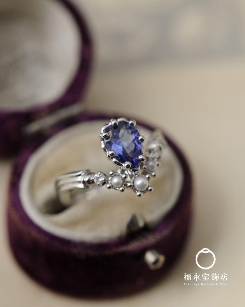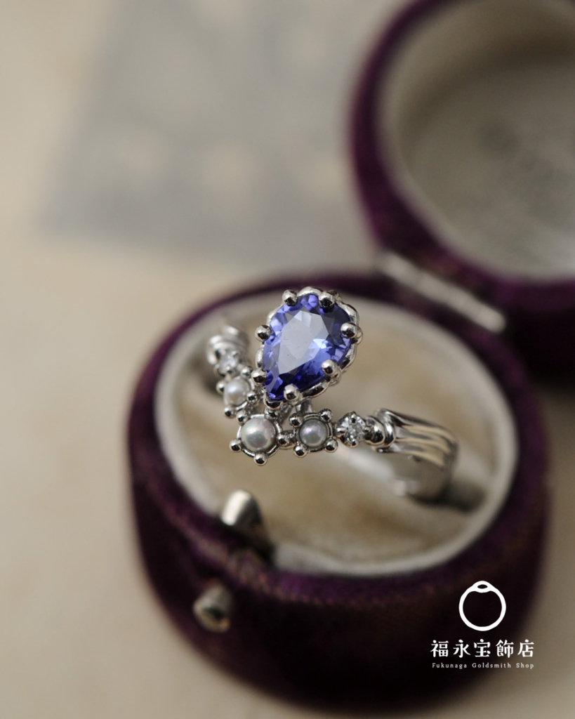 オーダーメイド 2026.04.18 graceline×relaxline オーダーメイド 今日ご紹介するオーダーはこちら。 タンザナイト×アコヤベビー プラチナでお仕立てしました。 めちゃ素敵ですよね。 良い感じの青紫が、タンザナイトらしくて本当にいい石です。 石座にはrelaxlineを取り入れ、その他はgracelineという変わり種ですが、それがまた素敵。 アコヤの極小ベビーパールのシルキーな感じがまたいい塩梅です。