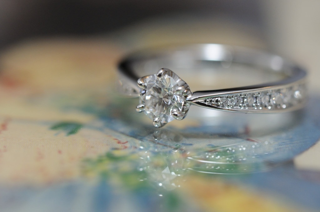 福永宝飾店モデル 2019.02.11 オーダーメイド婚約指輪//シェイプリング きりりとクールなプラチナに、上質なダイヤモンドを添えて、メレダイヤもしっかりと配置しました。 側面も平らに、エッジのきいた美しい指輪にお仕立てしました。 商品についてのご相談・ご予約・お問い合わせはこちら