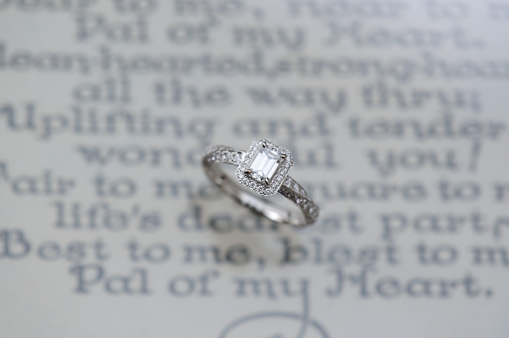 奇跡的にお持込のエメラルドカットと枠がぴったりはまりました。