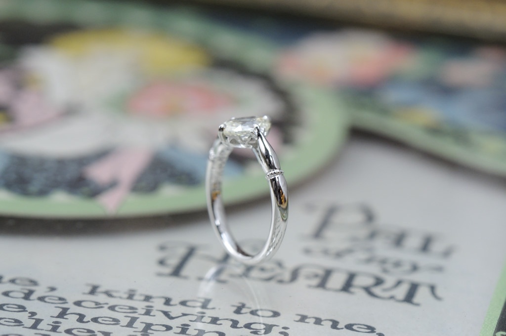 オーバルの0.6ct以上のサイズを、ほんのりクラシックな雰囲気を盛り込みつつシンプルに仕上げました。