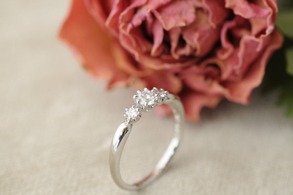 福永宝飾店モデル 2019.02.10 オーダーメイド婚約指輪//3stone 3石タイプ。 ふっくらとしたフォルム、細身のデザインで、可憐な印象です。 商品についてのご相談・ご予約・お問い合わせはこちら