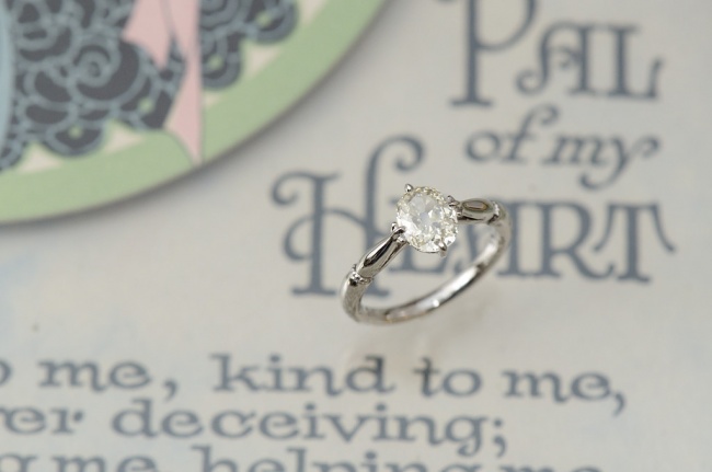 二本目の指輪には、小粒のダイヤを施した三面タイプを。