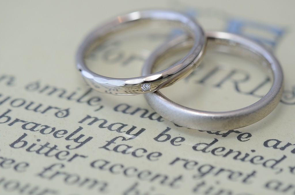 一部だけ鏡面に仕上げるなどして、コントラストを楽しめる指輪です。