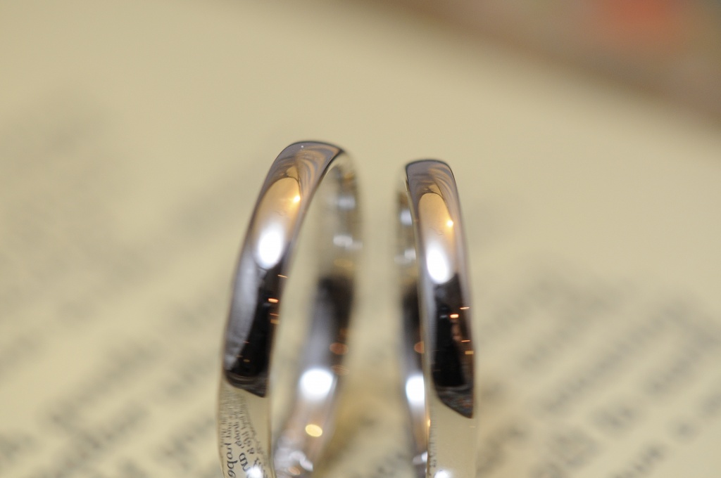 シャンパンゴールド、鏡面仕上げの結婚指輪です。