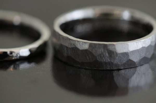 メンズはサイズも大きめで、かつ幅もかなりあるデザインでしたので、槌目も大きめになるように製作いたしました。