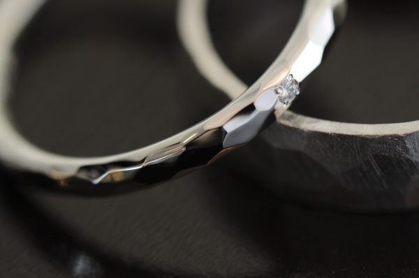メンズはたっぷりレディースはすっきり鎚目のオーダーメイド結婚指輪