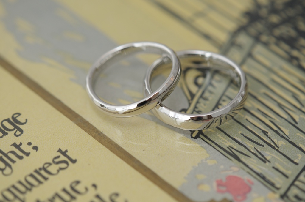 そして、リングの両角は鏡面タイプの槌目が入っていて、ふちをキラキラとさせています。