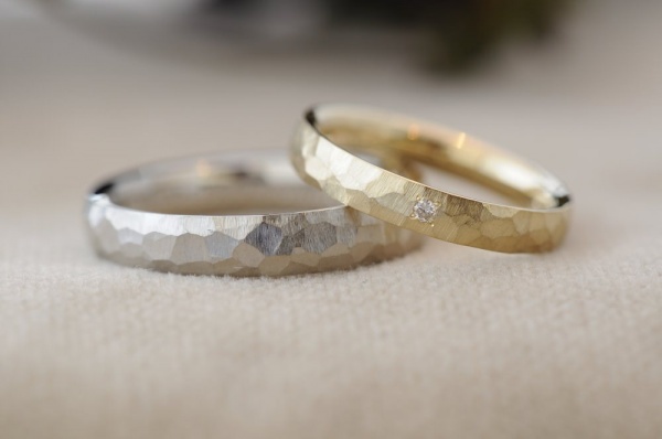槌目リングはなかなか人気があるのですが、手で作るテクスチャがそれぞれ毎度違ってとてもオリジナル感のある結婚指輪となります。