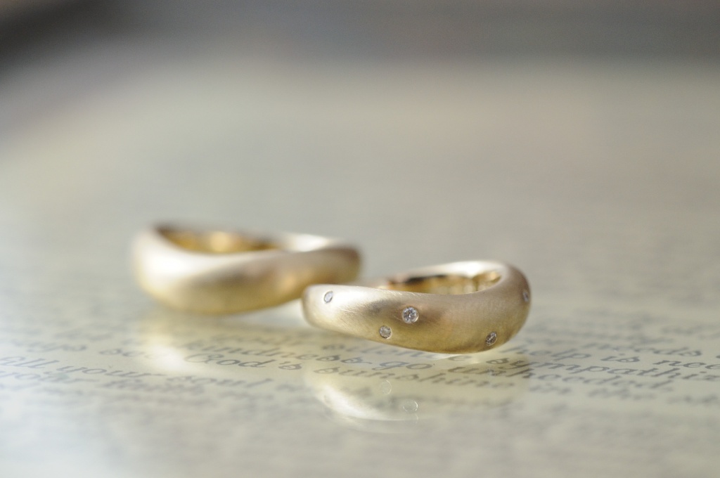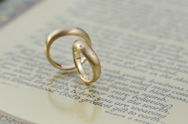 どちらもイエローゴールドを使用して、表面はマット加工。