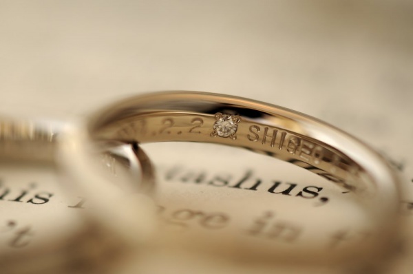 ミルグレインは大きめの粒で、お2人とも片側にのみ施しました。内側にはダイヤモンドをそれぞれに入れています。